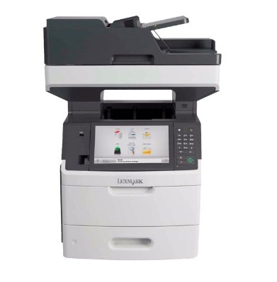 A multifuncional MX711DHE da Lexmark com conexão para rede, tela de toque colorida e velocidade de impressão rápida de 70 ppm e impressão em frente e verso permite que você copie, digitalize e envie fax.